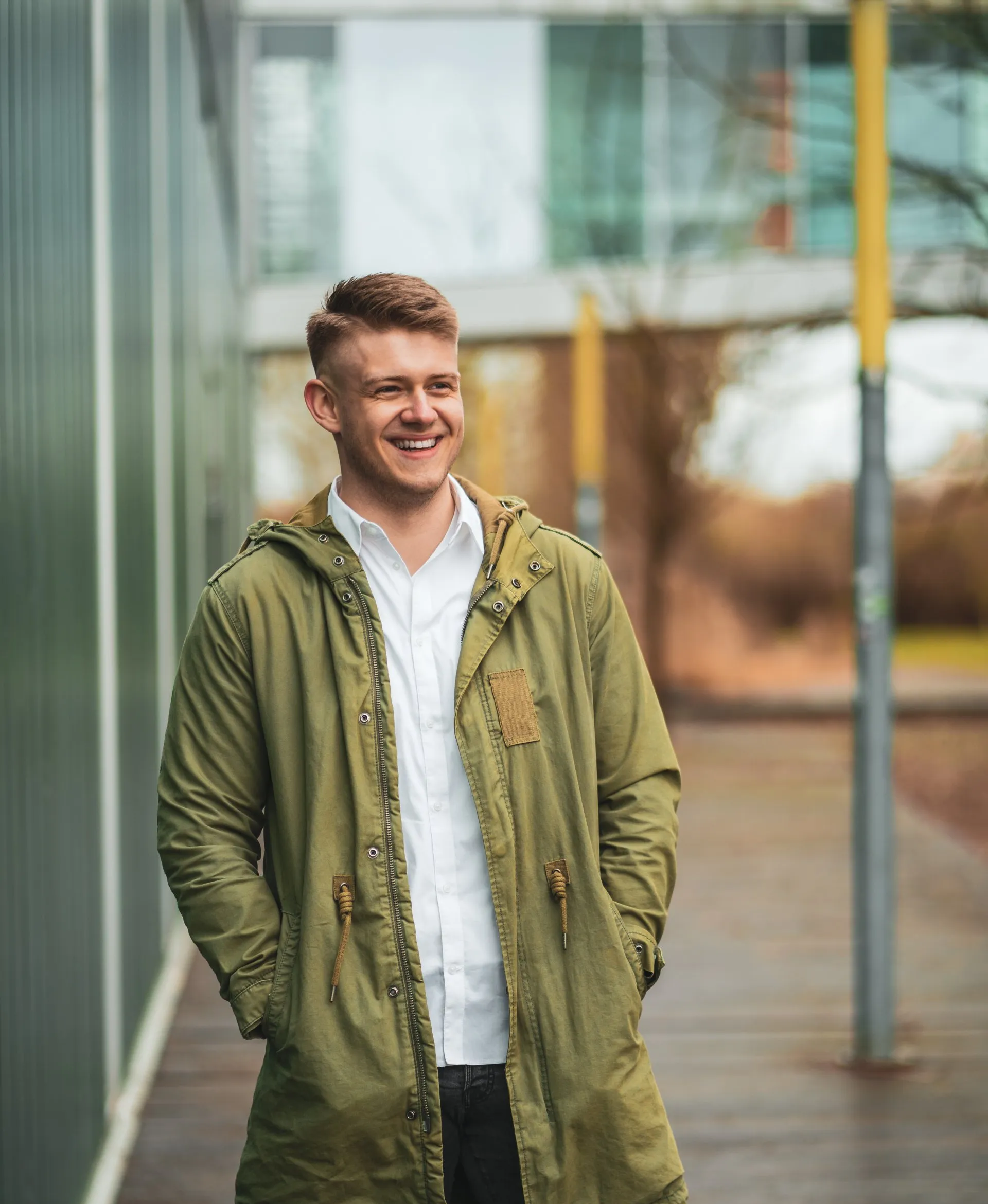 5. Pünktlich am vereinbarten Shootingort angekommen, besprechen wir die Positionierung des Motivs vor dem dazu passenden Hintergrund. Fotoaufnahmen aus unterschiedlichen Blickwinkeln, verschiedenen Kameraeinstellungen sowie Locationwechsel schließen sich an.